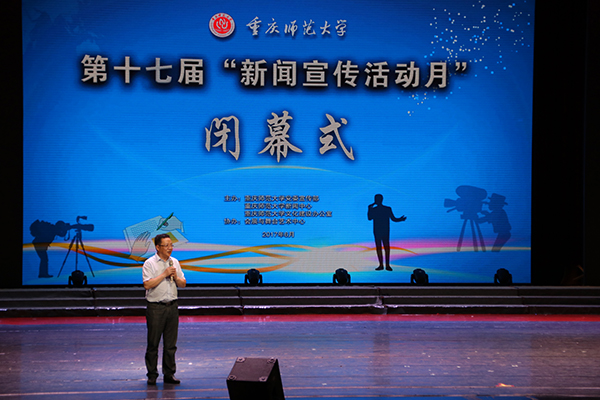6月7日晚,第十七届“新闻宣传活动月”在我校校友会堂圆满落幕。我校党委宣传部部长陈洪,学生处处长张明志,档案馆馆长郑志坚,教育科学学院党委书记刘清泉,党政办副主任王丽萍,党委宣传部副部长徐赤、王军,招生就业处副处长杨云等领导出席闭幕式。闭幕式还吸引了来自新闻中心、各机关单位和各学院师生前来观看。