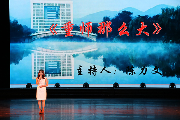 伴随着悠远的古筝名曲《高山流水》,《重庆师大赋》缓缓而至。我校档案馆馆长郑志坚感慨,会展与舞台艺术中心讲解团带来的诗朗诵让他想起了学校成长的点点滴滴,回忆起重师每一段历史性的进步和发展。