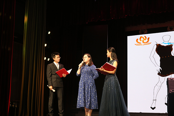 文化艺术设计赛二等奖得主吴迪介绍了她为校史馆讲解员设计的服装:上下两件套采用了重师的标志色——蓝色,上衣的纹饰则取自校徽上的山茶花。作为协办团队,会展与舞台艺术中心组织策划了文化艺术设计大赛和校史知识普及大赛,是本届“新闻宣传活动月”的一大亮点。