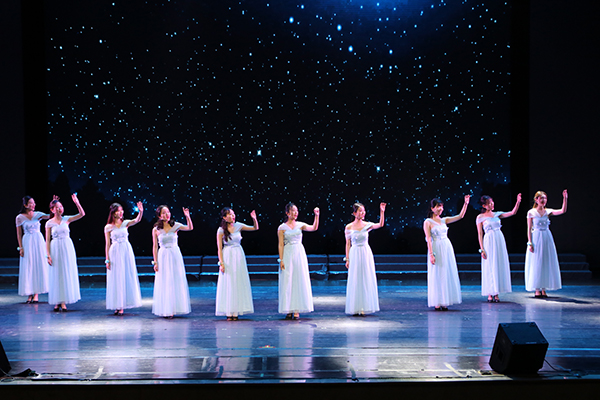 由新闻中心文艺部的十个姑娘带来的朱自清的《匆匆》,整齐划一的动作美轮美奂,十人自始至终齐声诵读悠扬动人。