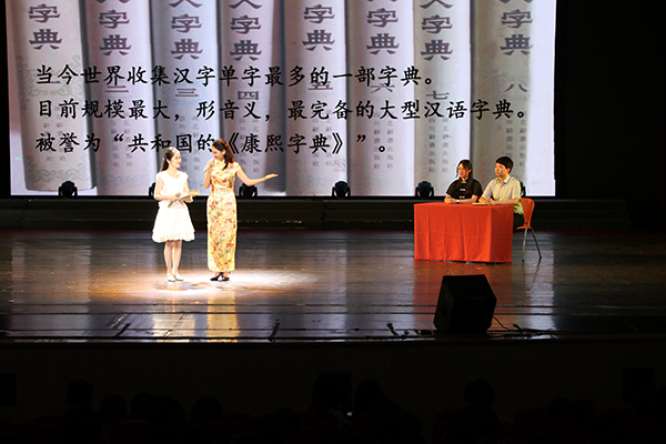 播音主持技能大赛一等奖得主杨凤带来的模拟主持《鉴宝》,以我校文学院教师当年参加编撰的《汉语大字典》为“宝物”,生动、有趣并高度概括了“字典”的地位、价值和意义,把校史文化中的亮点巧妙地融入到了活动之中。同为一等奖得主的陈力文则在节目《重师那么大》中把目光投向了我校的环卫工人。“五言新闻”大赛获奖者曹天静为微视频大赛一等奖作品《老街》解说,VCR大赛一等奖获奖者穆奎成与播音主持大赛二等奖获奖者何莜艺再现拍摄过程……第十七届“新闻宣传活动月”闭幕式形式多样,精彩纷呈:个人展、联合展、文艺表演,还有贯穿在各类展示之间的颁奖仪式。