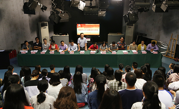 9月20日,mansion88明升新闻中心2016—2017学年度新成员见面会在演播大厅举行。党委宣传部部长、新闻中心主任、文化建设办公室主任陈洪,党委宣传部副部长徐赤、王军出席会议。宣传部全体工作人员以及新闻中心全体新成员参加见面会。