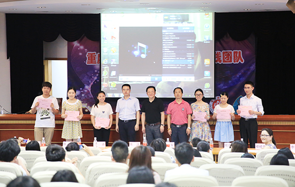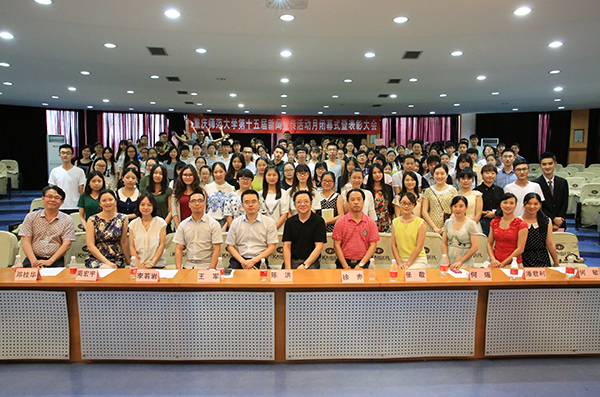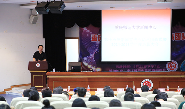 6月11日下午,我校第15届新闻宣传活动月闭幕式暨2014-2015学年度表彰大会在凯撒报告厅举行。我校党委宣传部部长陈洪,副部长徐赤、王军,新闻中心指导老师、毕业生代表及新闻中心全体成员齐聚会场。