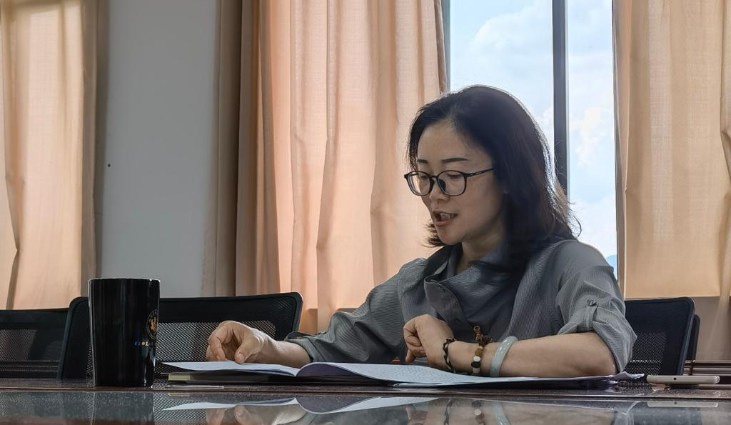 会议伊始,综合科科长袁娟从发展脉络、辉煌成就、正确方向、重点任务等四个方面,对习近平法治思想进行解读和学习。她指出,习近平法治思想是全面依法治国的根本遵循和行动指南,我们要深学笃行习近平法治思想,从党的百年法治奋斗史中汲取智慧和力量,努力建设更高水平的法治中国。