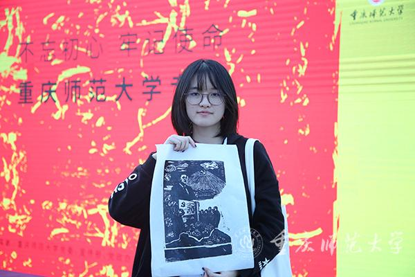“这次活动启发着我们思考如何更好地开展教学活动以及怎样利用文化载体做好教书育人工作。”我校美术学院副院长朱锦秀在现场与学生共同拓印版画,她表示,通过木刻版画的方式能够将习近平新时代中国特色社会主义思想和党的十九大精神讲清楚、讲明白,让师生受到艺术熏染,也让师生对“不忘初心、牢记使命”主题教育有更近距离的认知。