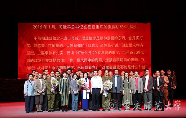 谈及《江姐》的川剧化改编,我校音乐学院院长、重庆市音乐家协会主席、重庆市歌剧院歌剧原江姐的扮演者张礼慧谈到,歌剧《江姐》的音乐创作,本来就运用了许多川剧等地方音乐素材,所以,这次川剧改编,我听到了许多似曾相识的旋律,感到很亲切,这也许就是歌剧的戏曲化,川剧的歌剧化所呈现出来的很好结合。我校作为师范院校,一直都很重视学生的革命历史文化教育,十几年前歌剧《江姐》也曾到重师来演出过,作为发生在重庆的动人故事,年轻的学子们需要铭记这些可歌可泣革命英雄事迹,让他们以后踏上工作岗位,能够很好地为人师表,让最好的学生去培养更好的下一代。