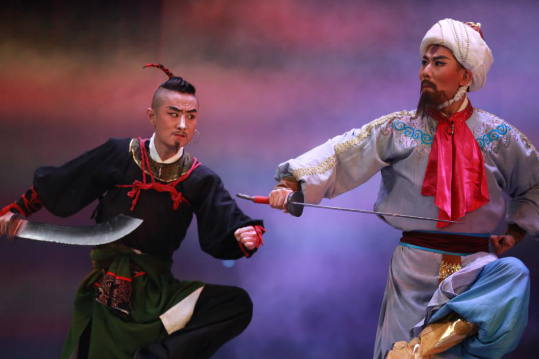 整场表演“唱、念、做、打、舞”俱全,作品表现了神笔张对敦煌壁画的传承,西域商人伊努斯在丝绸之路上的贸易往来,而英娘张恩两人的爱情故事随着家国命运一波三折,扣人心弦。